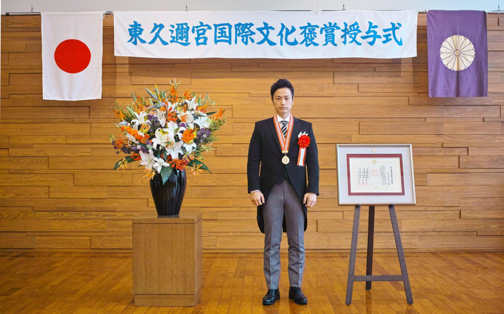 この度、光栄にもご推薦をいただきまして「東久邇宮国際文化褒賞」を授与賜りました。