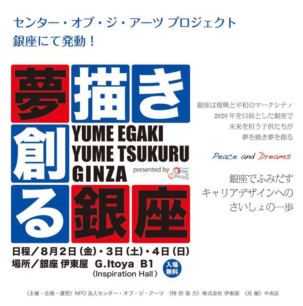 中央区行政と教育機関、各種団体の相互により多様な活動を展開する中、今回は批所日本のセンターといえる「銀座」にて、子供たちが夢を描くイベントを開催します。
