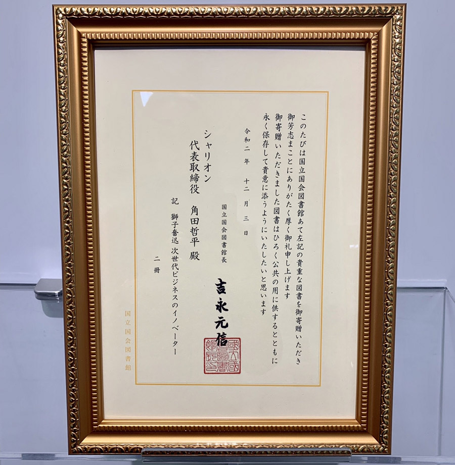 このたび、弊社代表の角田が日頃からお世話になっております、元衆議院議員の松岡様よりご縁をいただきまして著書を『国立国会図書館』に寄贈し感謝状をいただきました。