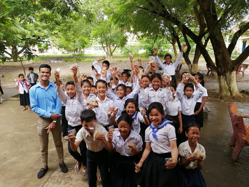 最先端の歯のオーラルケア製品サービスを展開する株式会社シャリオン(本社:東京都港区、代表取締役:角田哲平)は、株式会社テーブルクロスのFood for Happiness事業、カンボジアの子どもたちのために美味しくて健康的なお菓子を作っているNom PoPokと提携し、カンボジア王国カンダール州ダチョウ小学校の子どもたちへ寄付いたしました。