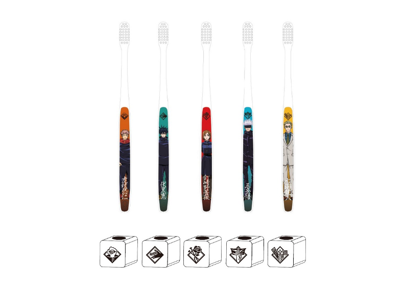今回、主人公の虎杖悠仁をはじめ、伏黒恵や釘崎野薔薇、七海建人、五条悟といった主要キャラクターの歯ブラシ・スタンドセットと歯みがき粉を展開します。