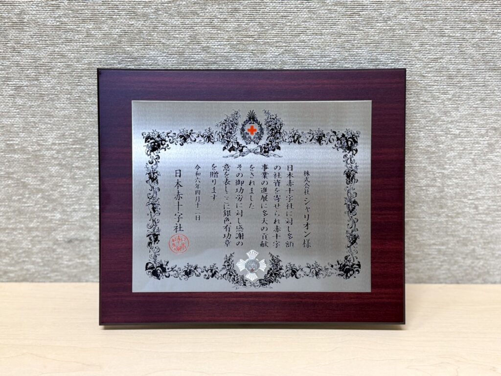 最先端の歯のオーラルケア製品サービスを展開する株式会社シャリオン(本社:東京都港区、代表取締役:角田 哲平)は、日本赤十字社に対し事業の進展に貢献したことにより「銀色有功章」が贈呈されましたことをお知らせいたします。