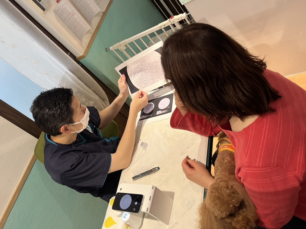 レッスンでは、顕微鏡・LEDライトを使用した歯垢や歯周病菌の観察、歯周病の基礎知識に関する講義などを実施。愛犬の口腔環境を「目で見る」ことで、飼い主さまにとっても理解が深まる大変有意義な時間となりました。